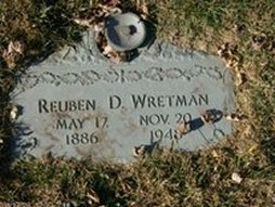 | Reuben David Wretman. Born 1886-05-17 [1] . Died 1948-11-20 [1] . | F Johan (John) August Wretman. Born 1858-12-30 in Sjöstugan, Åtvid (E) [1] . Died 1926-02-16 in Moline, Rock Island, IL USA [1] . | FF Eric August Wretman. Born 1828-05-18 in Ängfall, Åtvid (E) [3] . Died 1895-01-10 in Moline, Rock Island, IL USA [4] . | FFF Anders Olofsson Wretman. Born 1799-05-19 in Bekarp, Tjärstad (E) [5] . Died 1891-10-29 in Malmvids Gruva, Åtvid (E) [5] . |